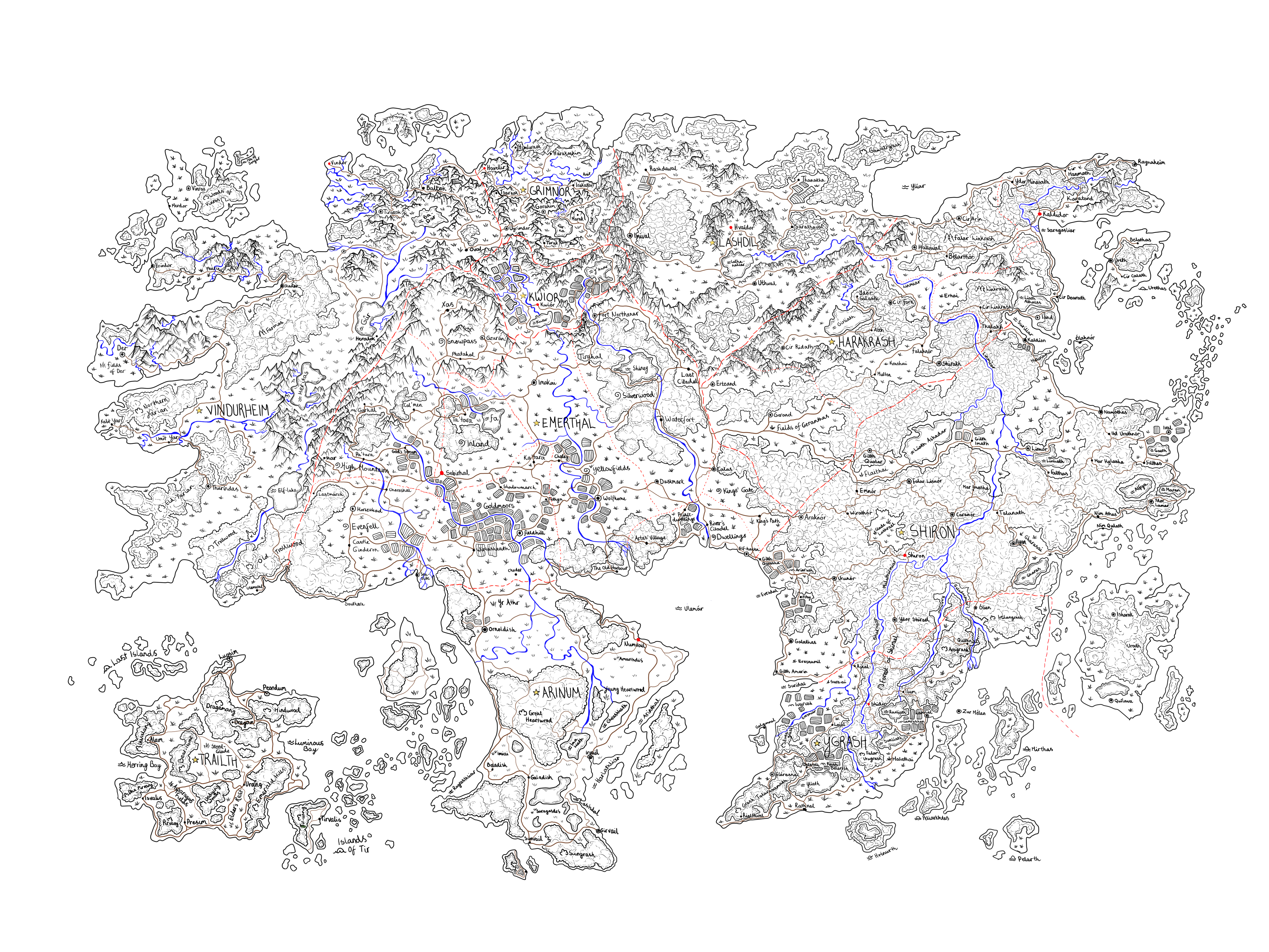Suurimpia kaupunkeja ovat Vindor ja Baltok pohjoisessa, Der ja Ikador lännessä ja Thurindas ja haltioiden Suraval etelässä.